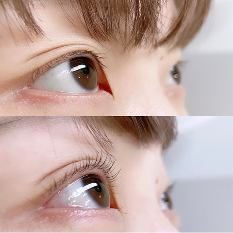 パリジェンヌラッシュリフトでは、目頭目尻の矯正効果によって、まぶた全体がリフトアップ。
